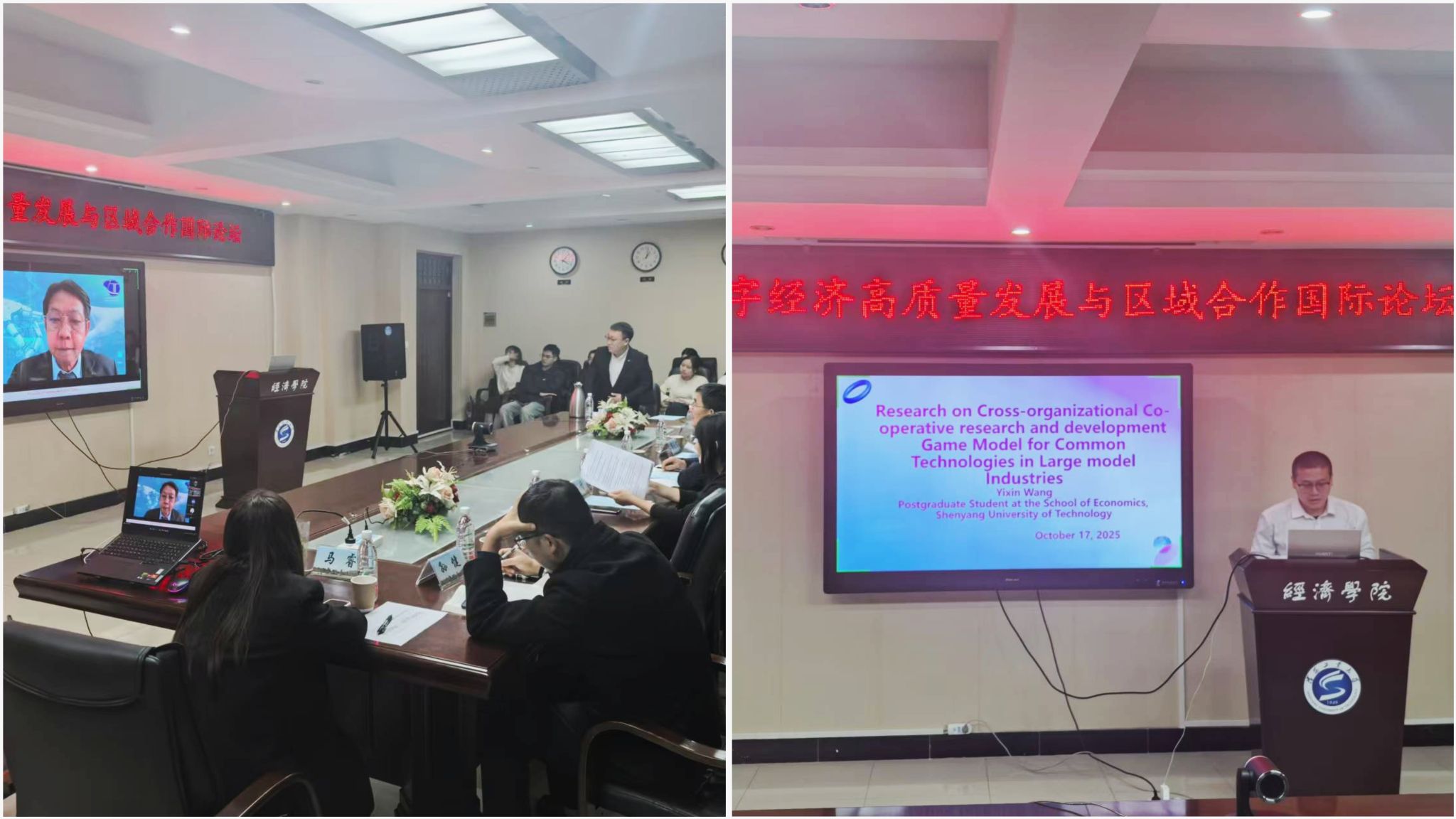 10月17日,由沈阳工业大学主办,沈阳工业大学经济学院、辽宁省东北亚区域经济合作研究基地、辽宁省数字经济现代产业学院承办的第二届数字经济高质量发展与区域合作国际论坛在文科楼526室召开。本次论坛旨在为相关领域的教师和学生提供新思想、新理论、新方法、新成果的交流平台,共同探讨数字经济高质量发展的有效途径。